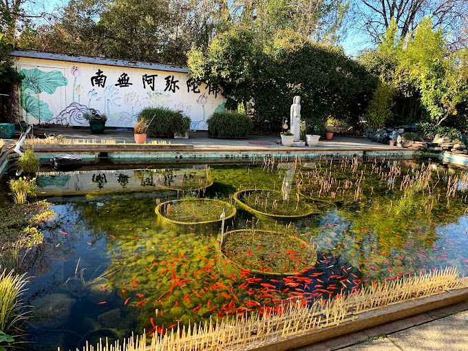 Placed away from the coastal cliffs, 80 acres of community that includes a university, schools, vegetarian restaurant, and the impressive Jeweled Hall of 10,000 Buddhas is open to the public where white peacocks roam the space and 10,000 images of Buddha line the walls.